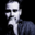 est assis, presque recroquevillé sur un tabouret tout simple, il a les